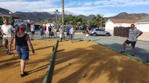 Unser Valentinsturnier 2025 auf Camping Las Torres. Vom 7.2.2025 bis 8.2.2025 spielten wird ein Supermelee mit 32 Teilnehmern und 6 Runden. Gewonnen hat Bert, unser ältester Spieler, 2. Platz ging an Peter und der 3. Platz an Kitty.